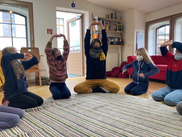 Ich habe begonnen, die Kinder zu fragen, was sie daran hindert die Übungen zu machen, anstatt warum sie in den Widerstand gehen. Und es kamen ganz unterschiedliche Gründe, wie: Angst davor einzuschlafen oder ein grusliger Filme, der einem Jungen immer wieder einfällt, wenn er die Augen zumacht und seinem Atem lauschen soll. Mit diesem Wissen kann ich ruhiger annehmen, dass sie nicht mitmachen wollen. Manchmal biete ich einem Kind an, den Raum zu verlassen oder einfach an seinem Platz zu sitzen.